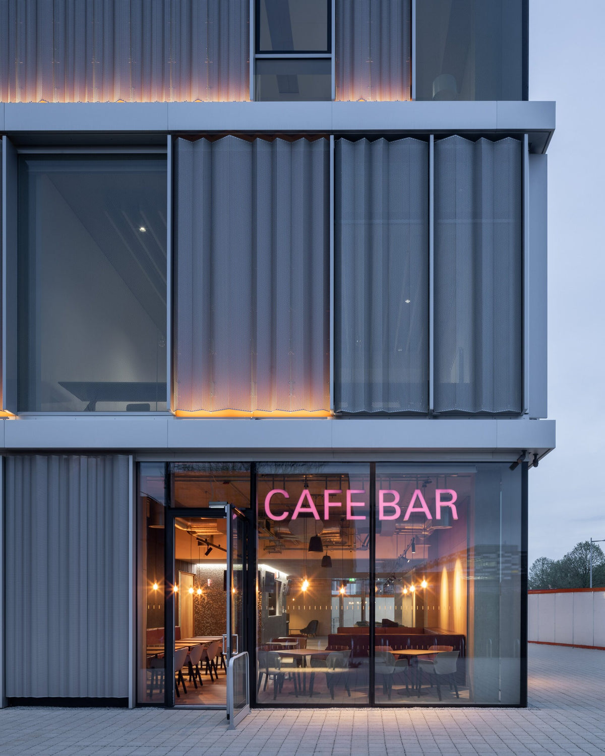 A complete storefront transformation focused on clean geometry, warm lighting and minimal signage.